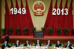 国务院30日晚在人民大会堂举行国庆招待会,热烈庆祝中华人民共和国成立六十四周年。习近平、李克强、张德江、俞正声、刘云山、王岐山、张高丽等党和国家领导人与1100多位中外人士欢聚一堂,共庆共和国华诞。 人民大会堂宴会厅华灯璀璨,宾朋云集,洋溢着喜庆...