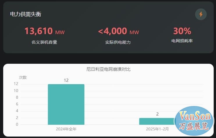 • 经济损失惊人: 电力短缺每年使尼日利亚损失约290亿美元,相当于GDP的5.8%。