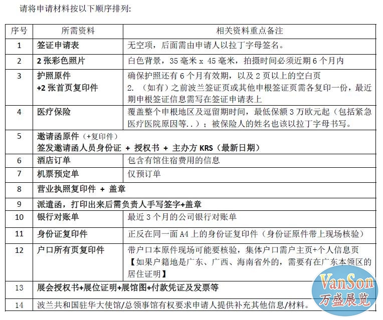 备注:在递交申请前请按下述清单准备所需材料, 否则您的签证申请可能被波兰共和国驻华大使馆/总领事馆拒签。按照须知规定,所需材料需另附英文或波兰语翻译。在签证申请审理期间,申请人护照将会留在波兰共和国驻华大使馆/总领事馆。
